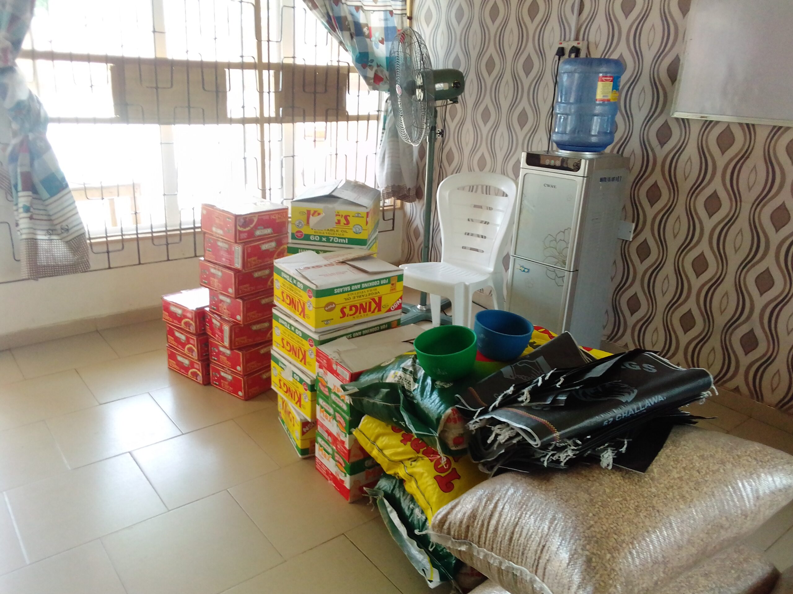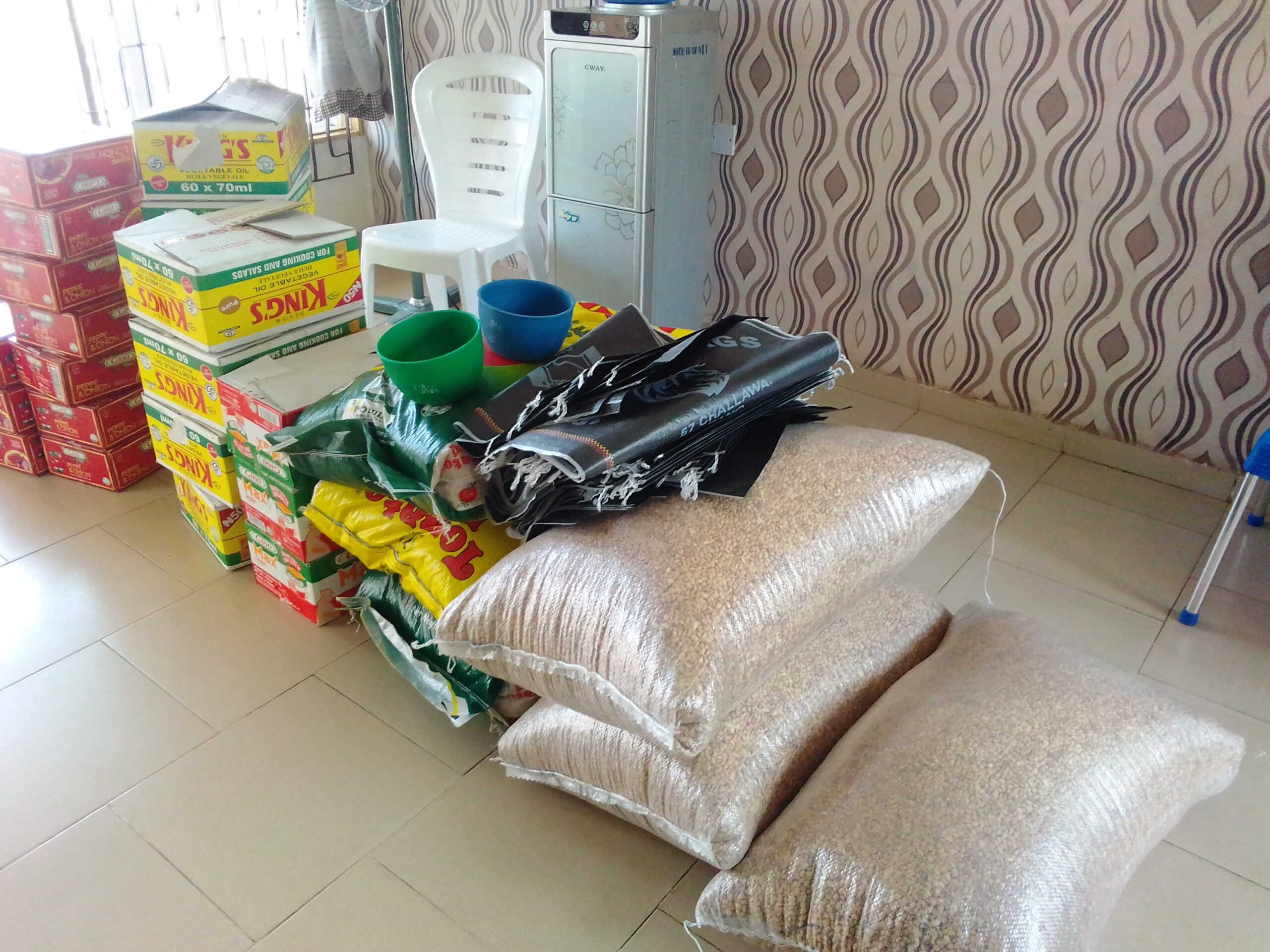 Hundred food relief packages containing; rice, beans ,garri, vegetable oil, stock cubes and tomato puree were given to them.